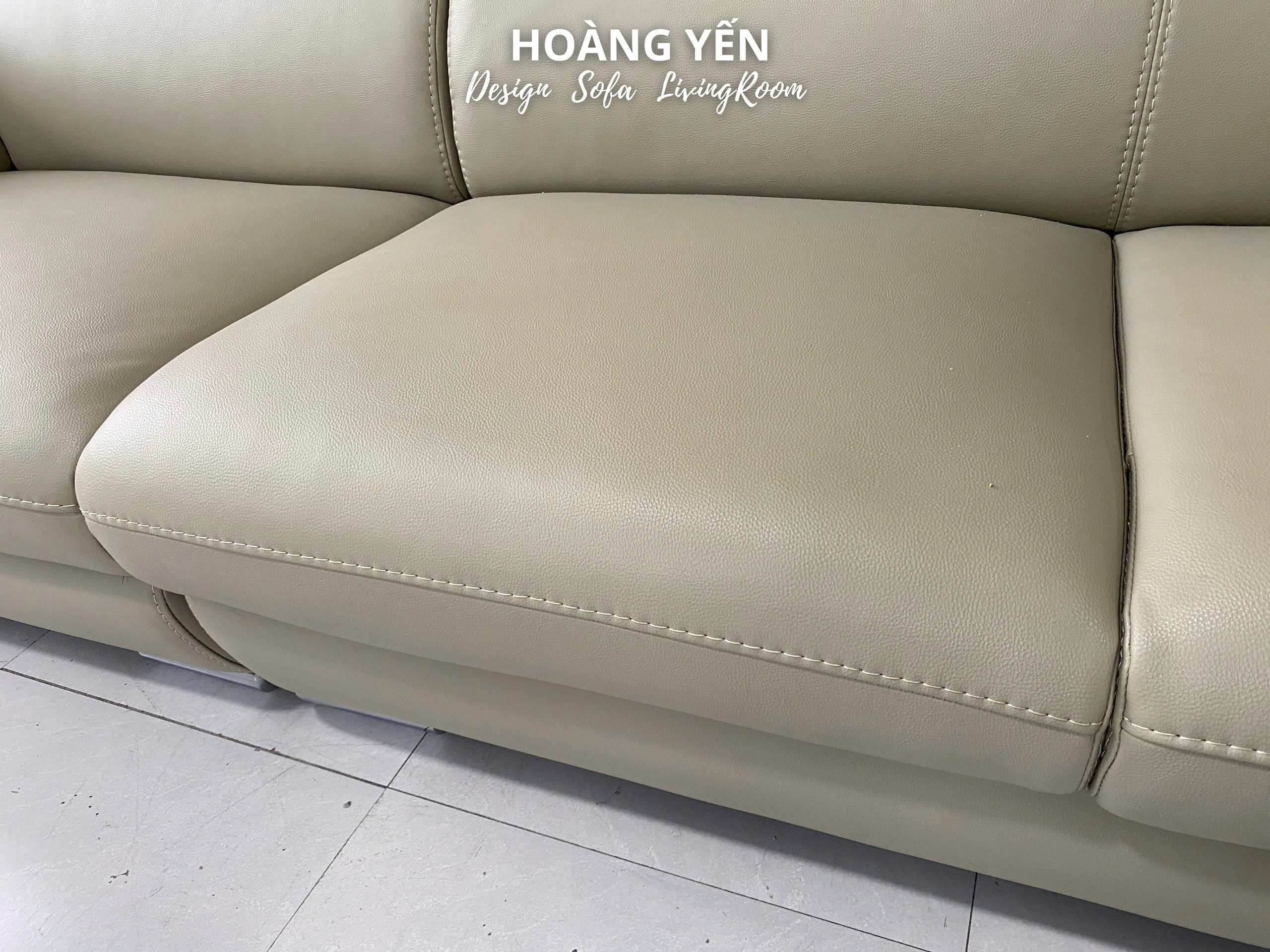 – Bề mặt da sofa văng da SHY339 kem sáng: