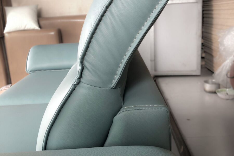 Đường may chia khối rõ ràng, đường chỉ nổi chạy dọc song song ở giữa khối lưng dưới giúp tăng tính thẩm mỹ cho bộ ghế.