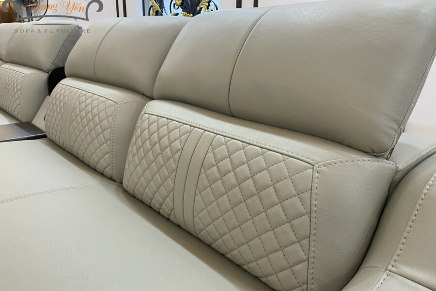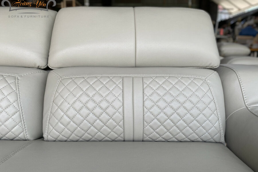 Tựa lưng sofa có những họa tiết đường may ngang dọc tỉ mỉ, độc đáo, mang đến cảm giác đẳng cấp.