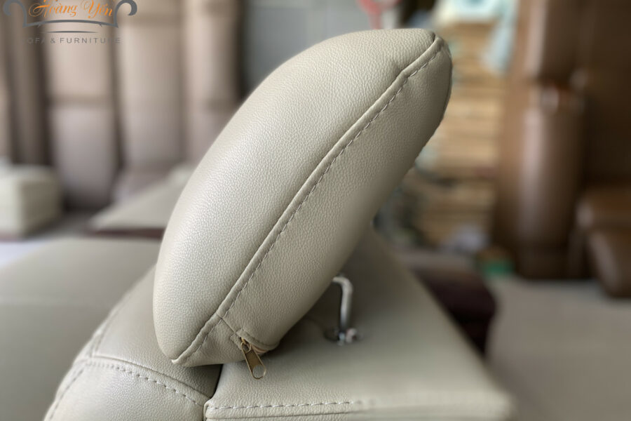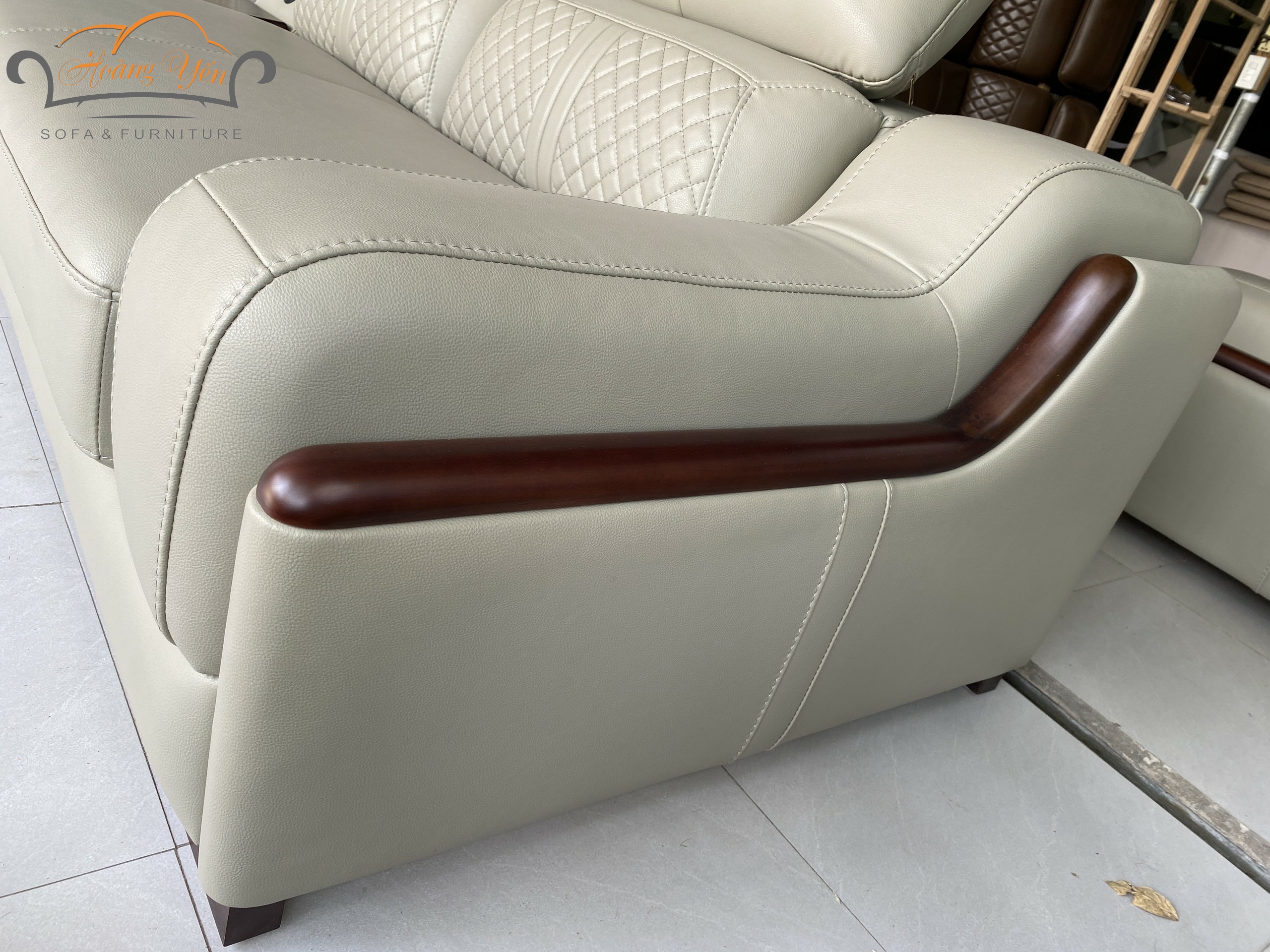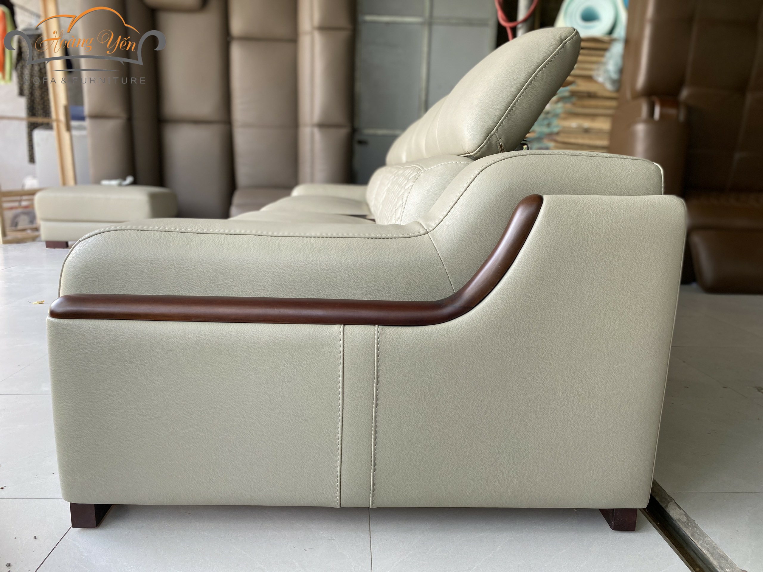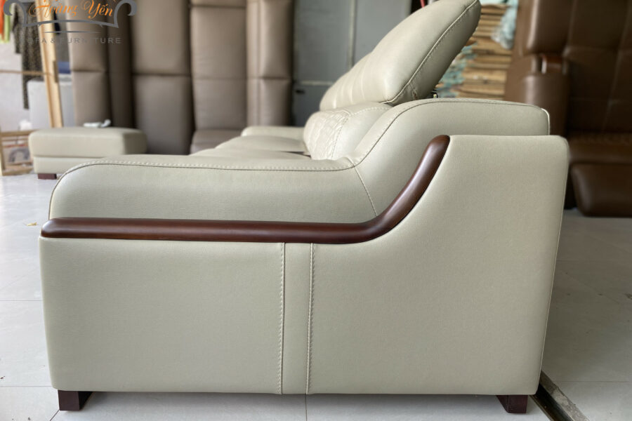Táp được làm từ gỗ với màu nâu sẫm, tạo sự quý phái và đồng bộ với các phần chi tiết gỗ khác trên ghế sofa da.