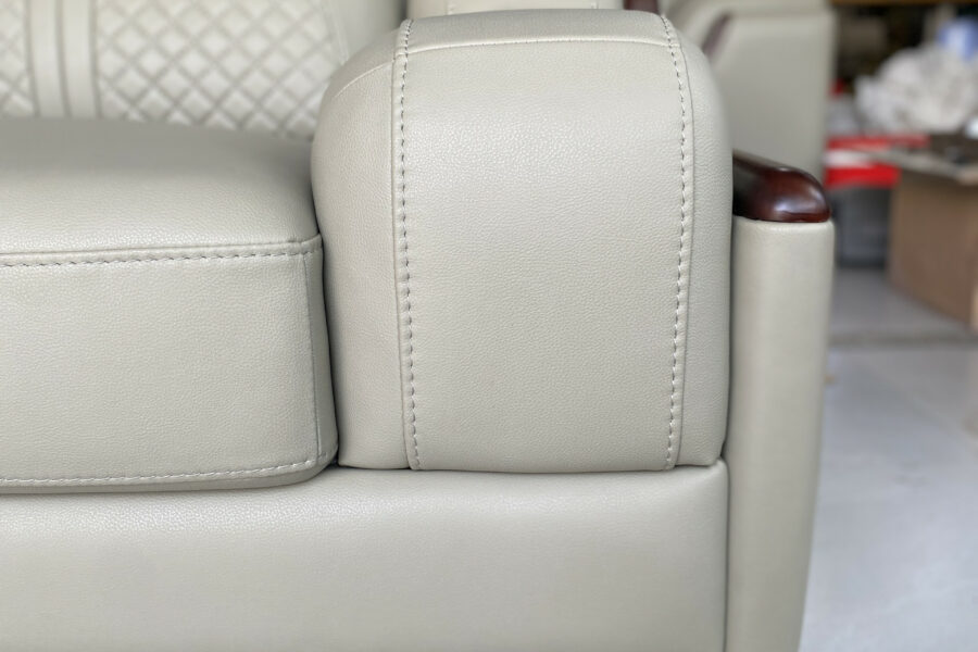 Sofa văng da SHY369 tạo điểm nhấn mạnh bởi đường may cách điệu và thiết kế rộng rãi.