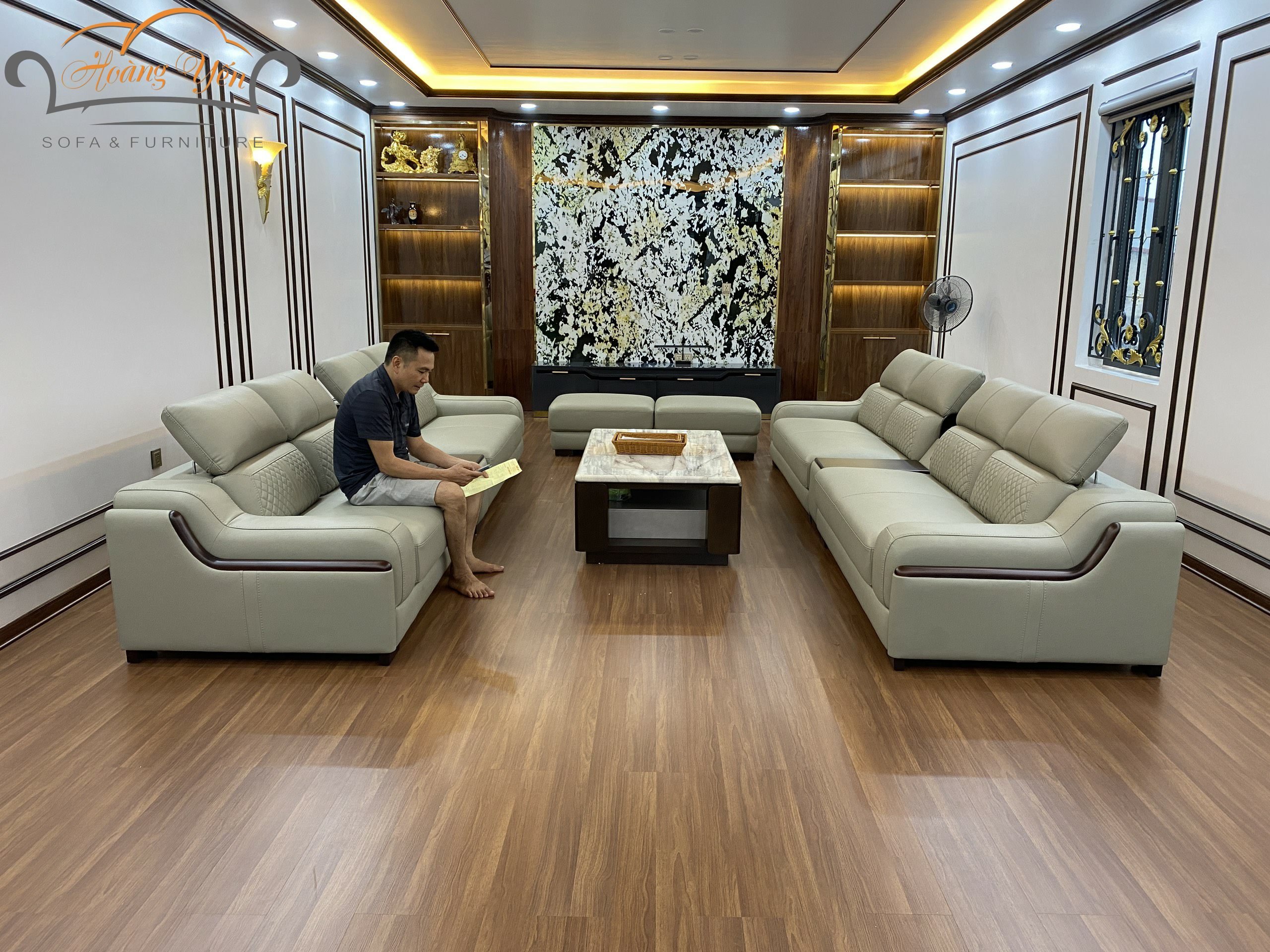 Sofa có 2 văng dài 3.8m và 2 đôn to 60*80, phù hợp với không gian vừa và rộng.