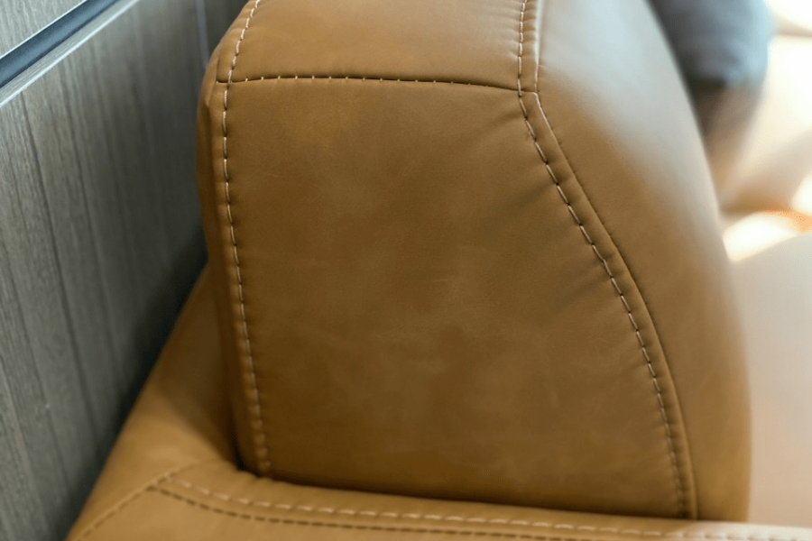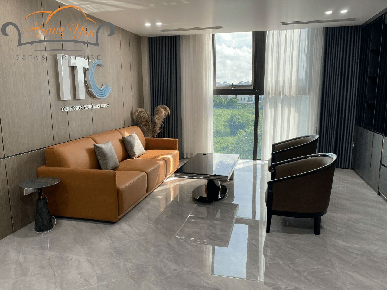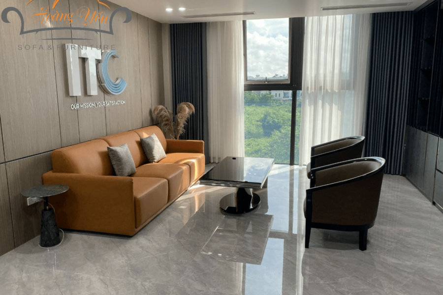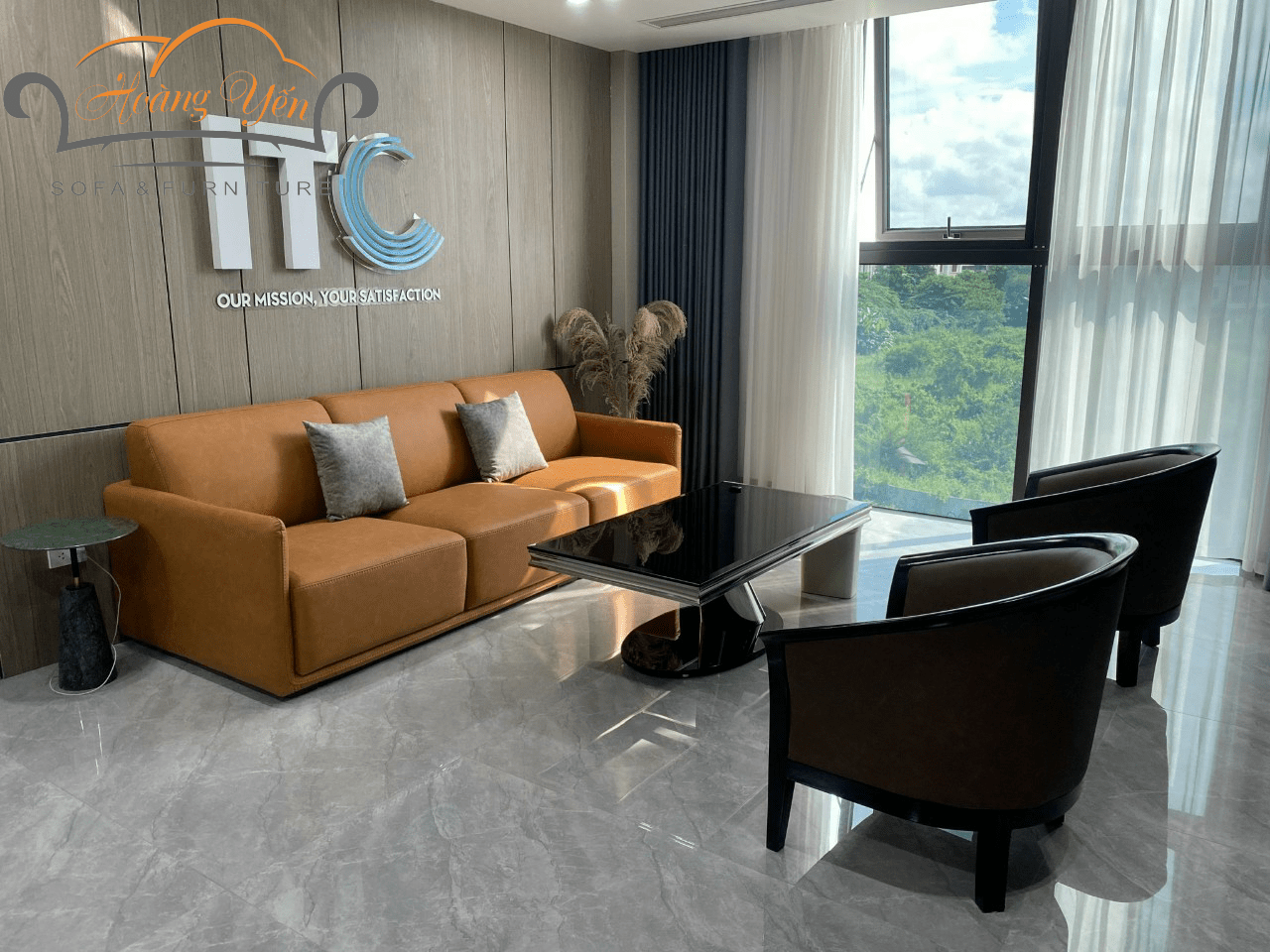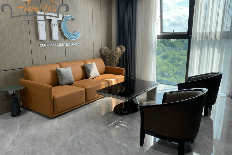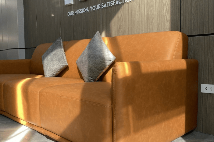 Bề mặt da mềm mại, tạo cảm giác mát mẻ, dễ chịu khi ngồi, rất phù hợp cho việc thư giãn hoặc tiếp khách.