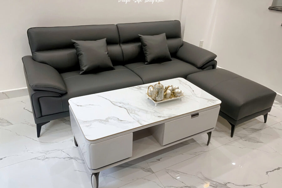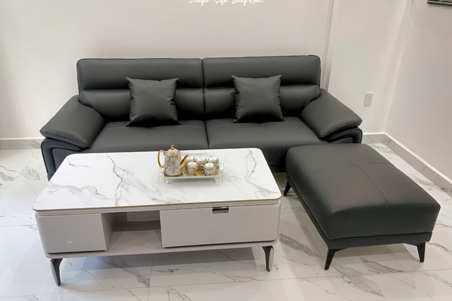 – Phong cách sofa văng da SHY405 ghi đậm: