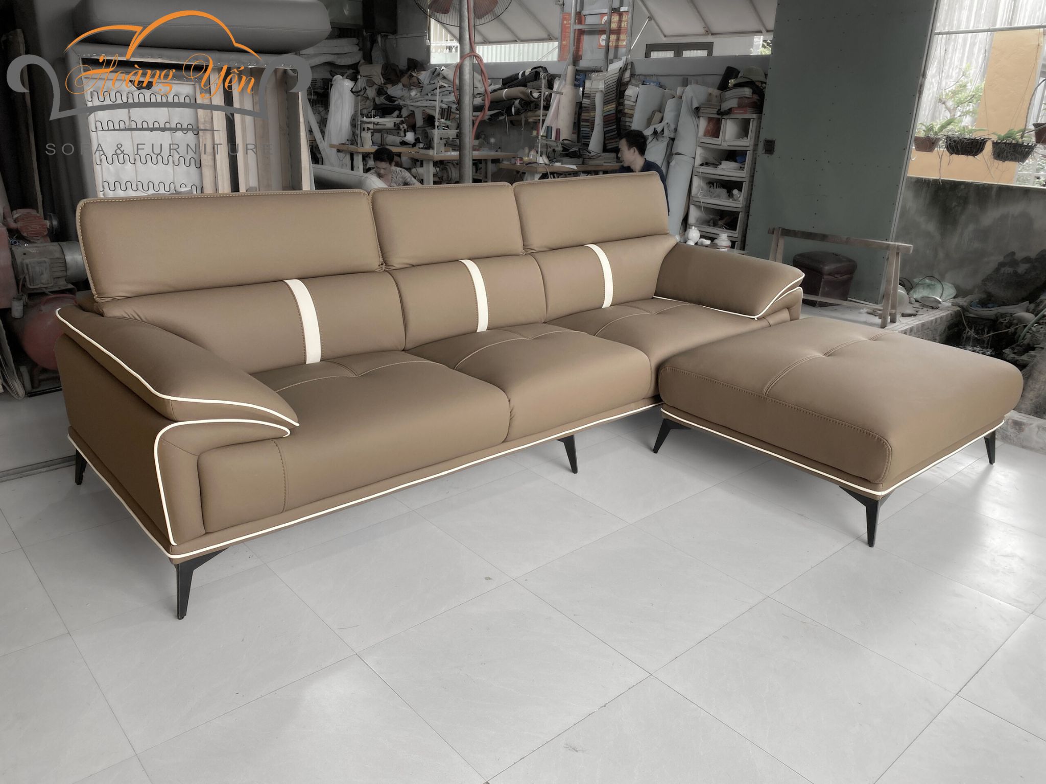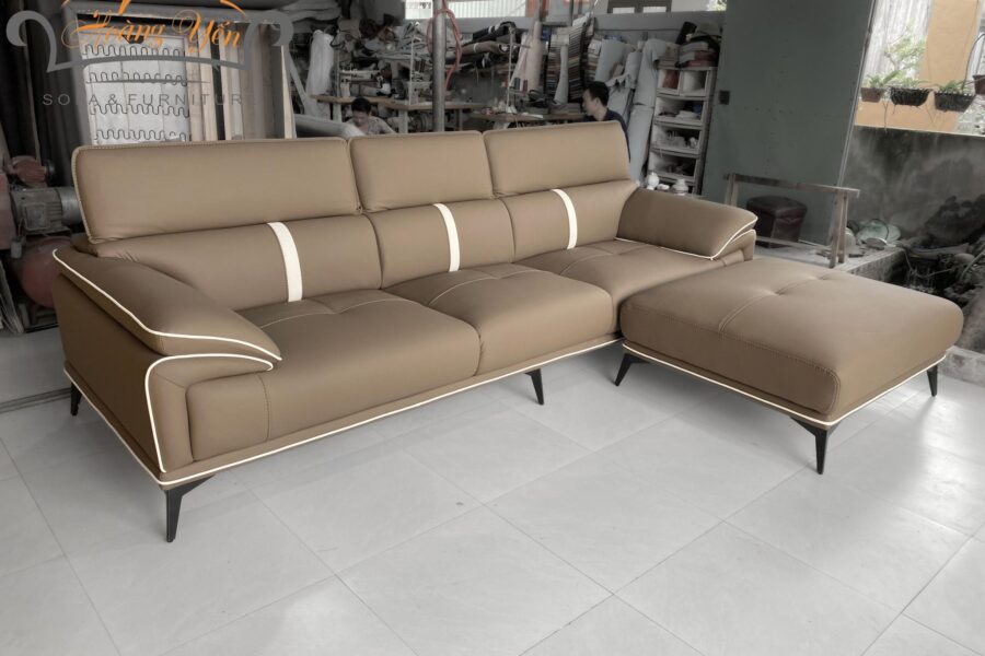 – Phong cách sofa văng da SHY405 nâu nhạt:
