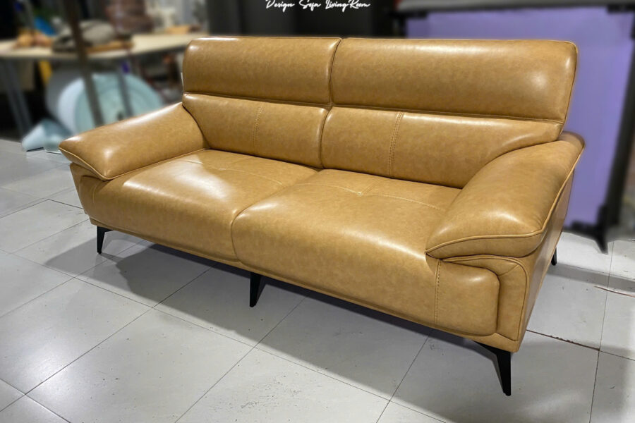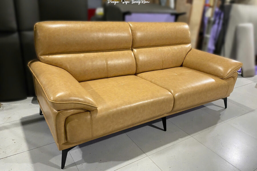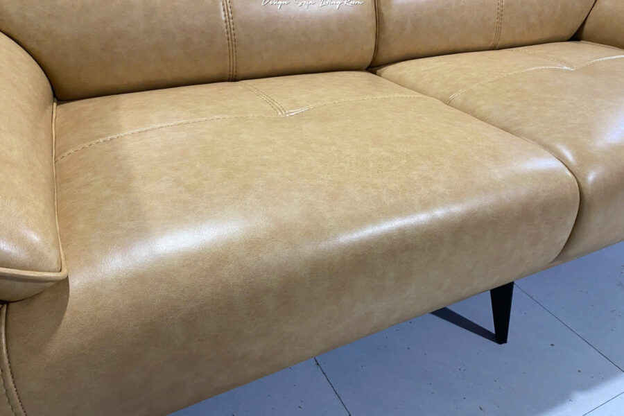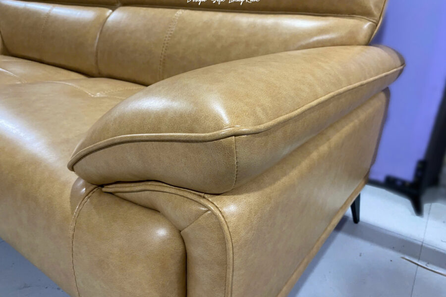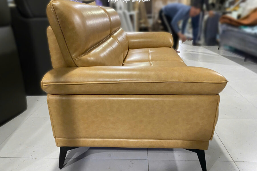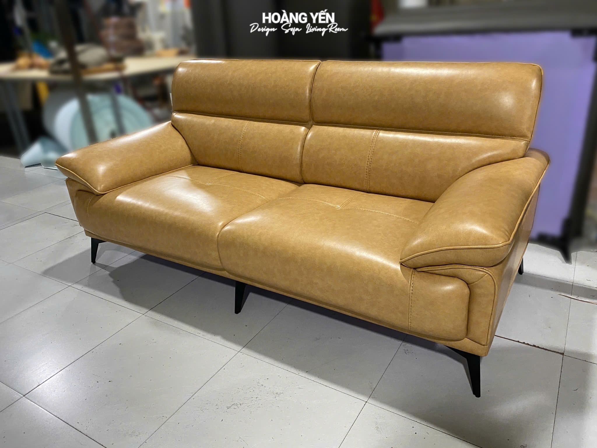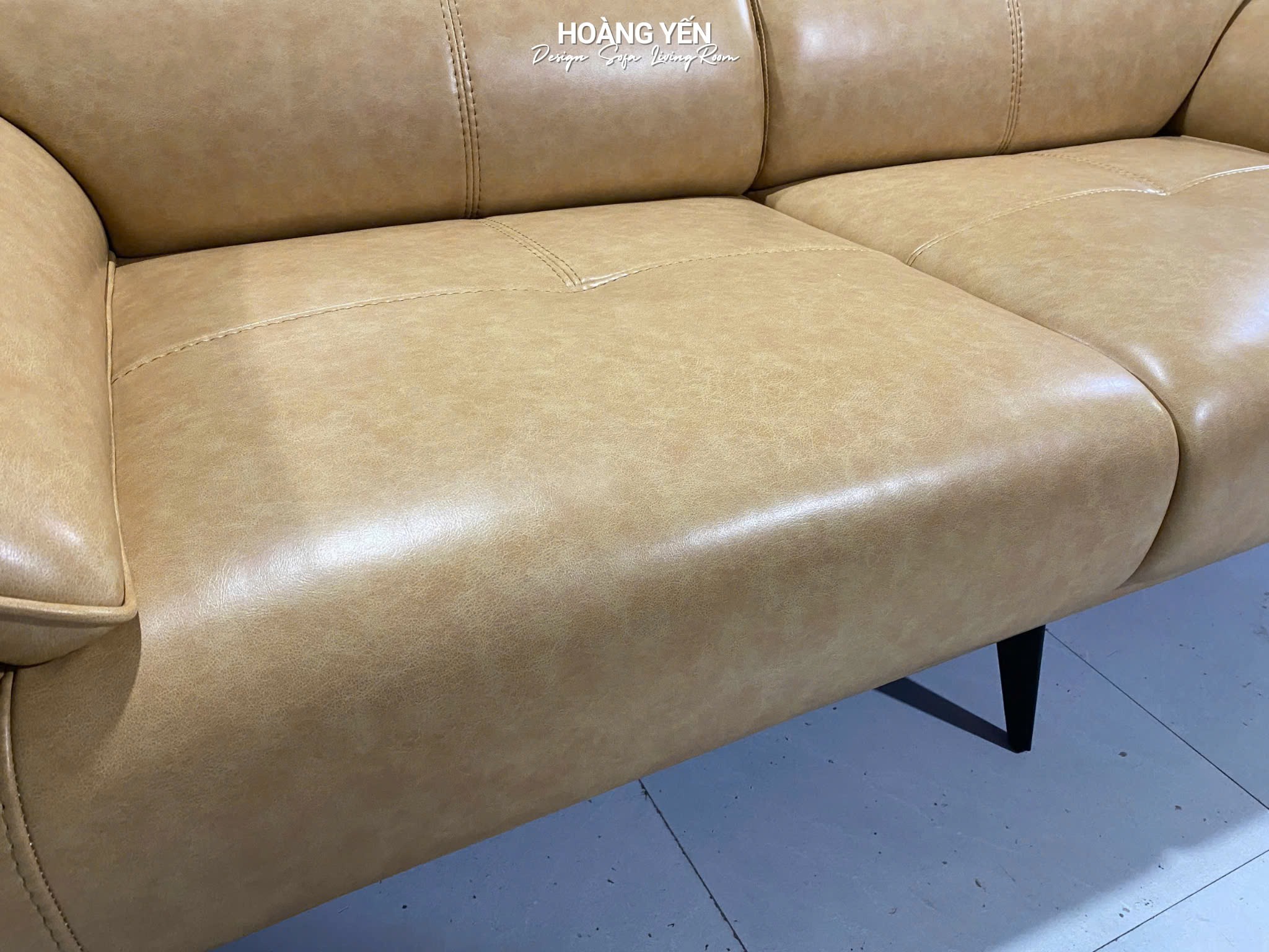Sofa văng SHY405 màu vàng bò kết hợp với vân da loang nhẹ, mang đến cảm giác ấm áp, sang trọng.