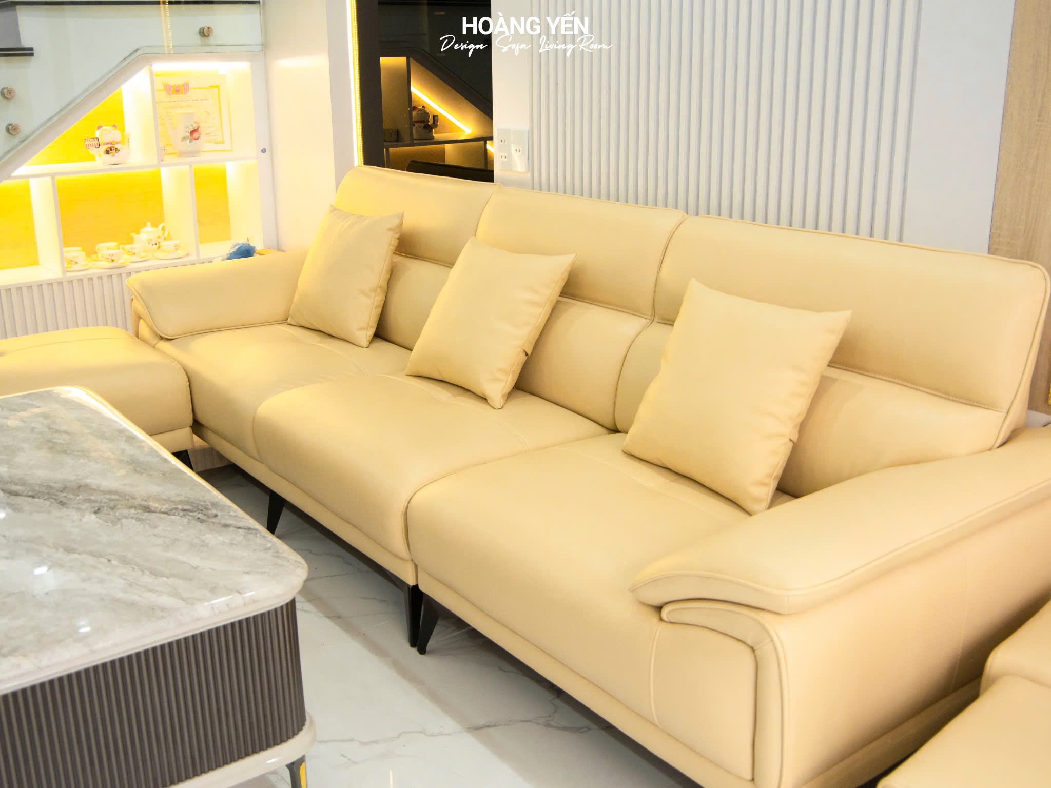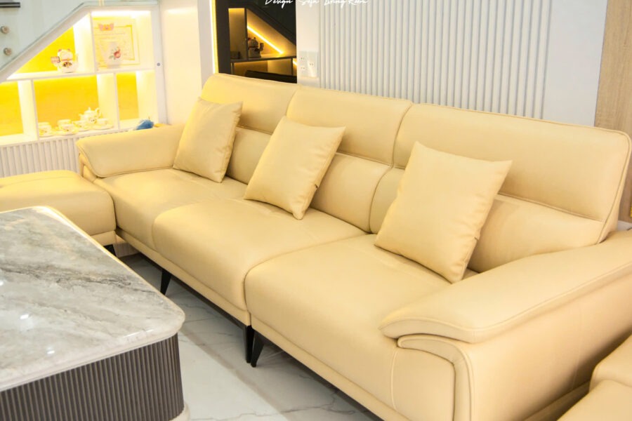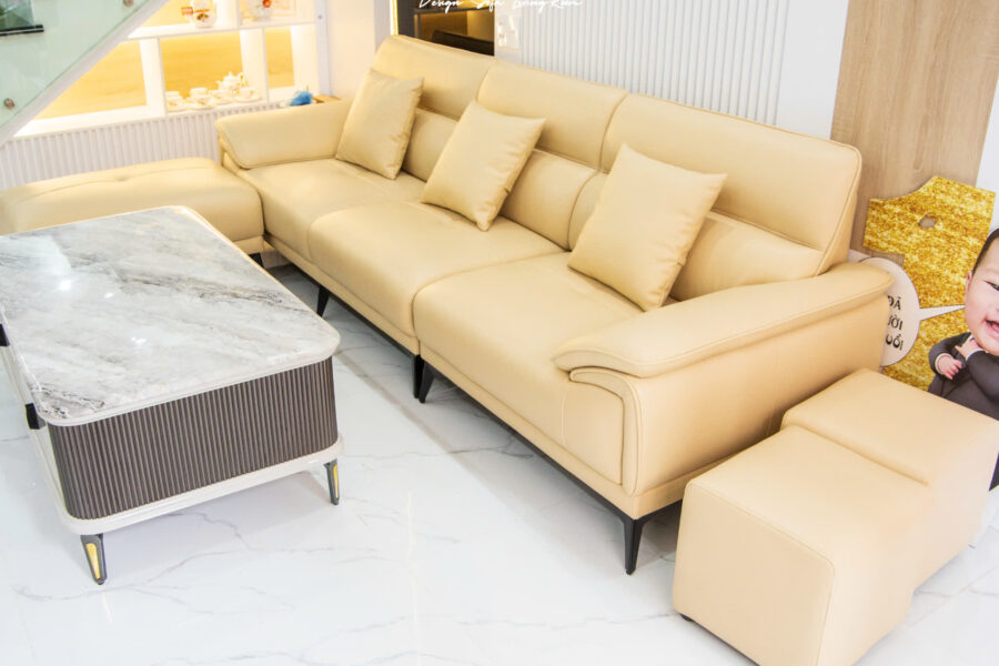 Sofa da sau có kiểu dáng khỏe khoắn, sở hữu màu sắc nhẹ nhàng tạo cảm giác ấm áp, tươi sáng