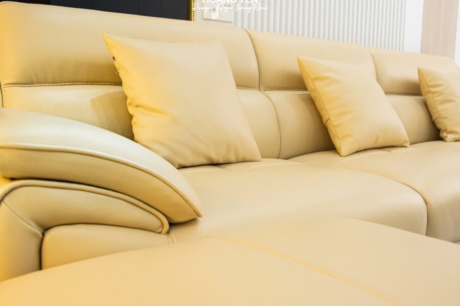 – Bề mặt da sofa văng SHY405 màu vàng sáng: