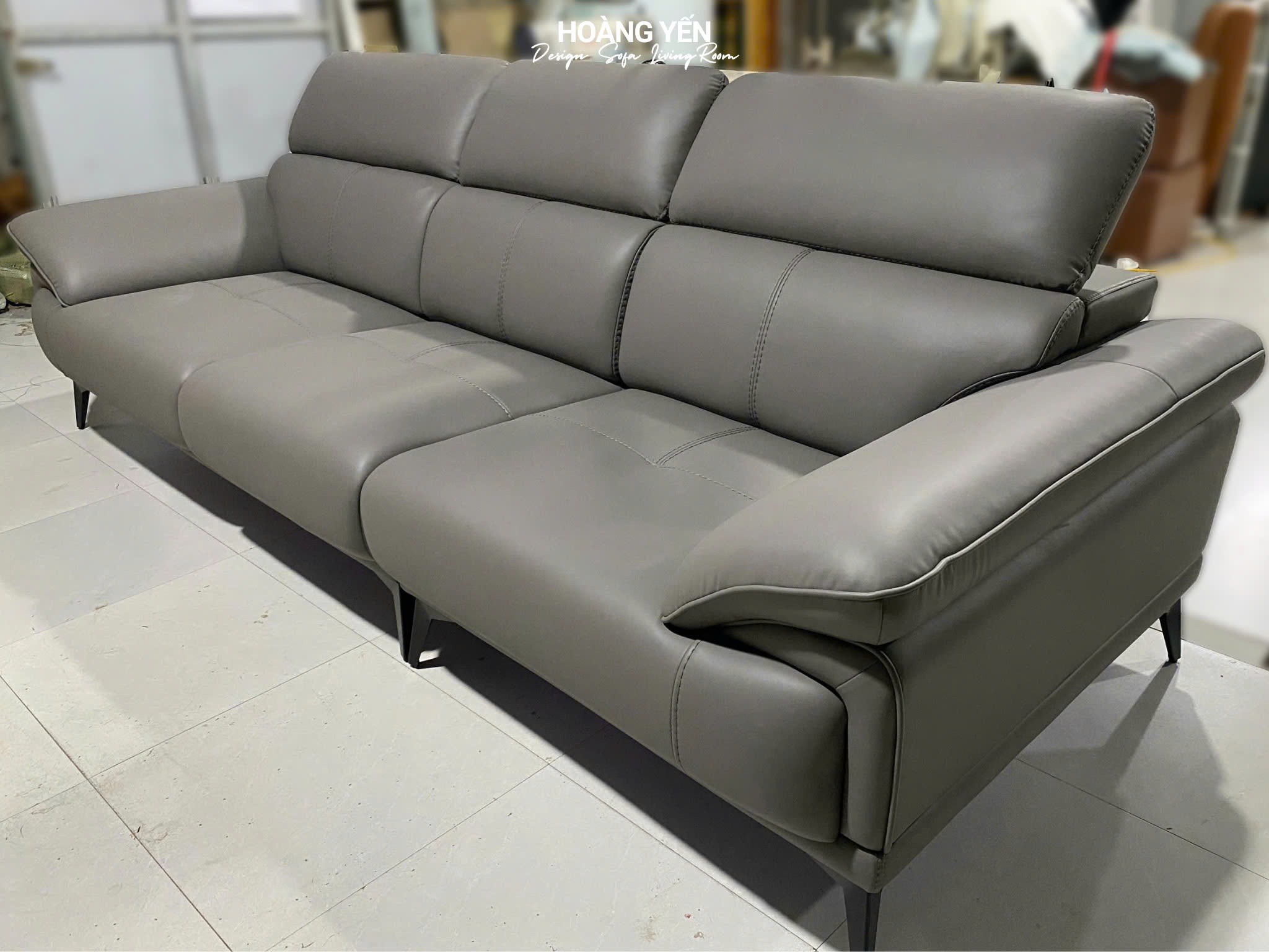 1. Kiểu dáng sofa văng da SHY405 xám đậm.