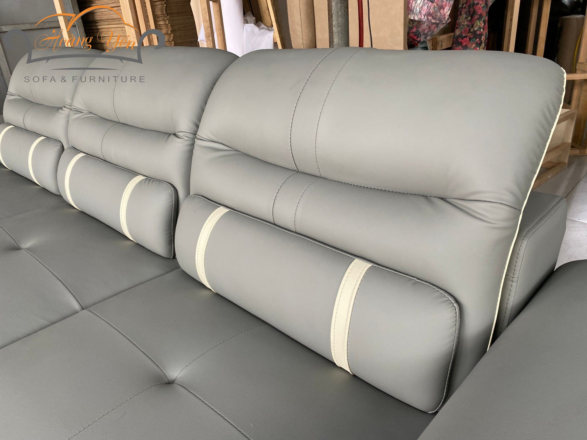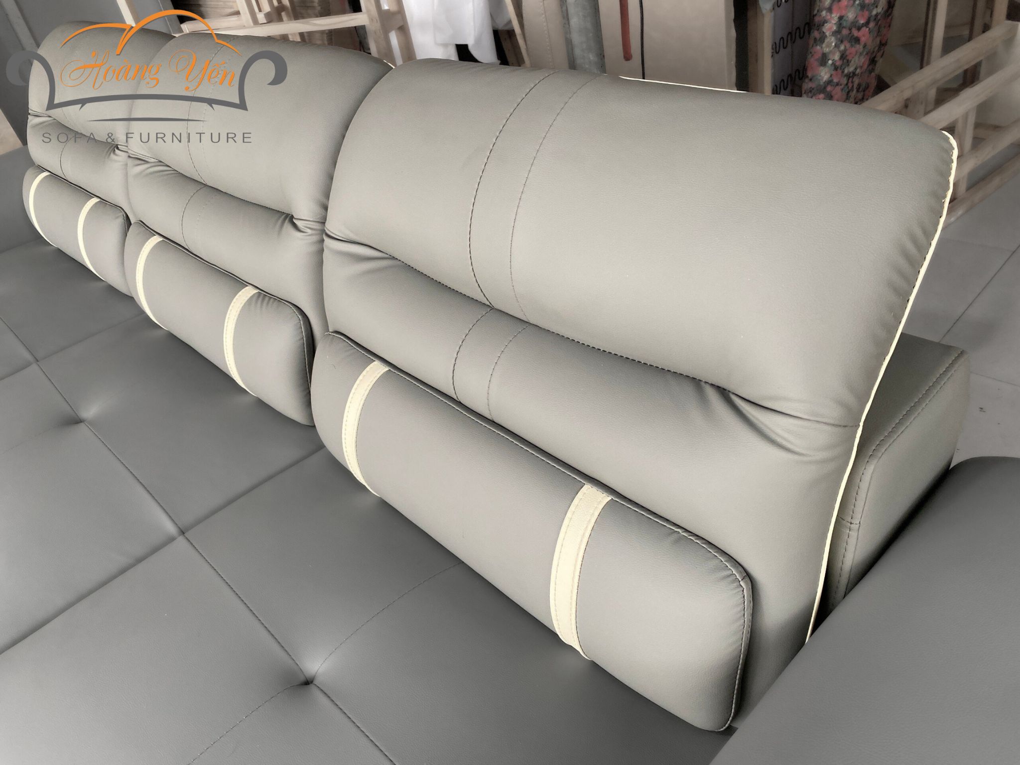 Sofa văng sử dụng da công nghiệp hiện đại, dễ vệ sinh, chống thấm tốt.