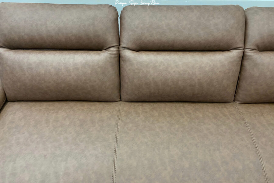Bộ sofa được thiết kế với 2 tầng lưng ghế phân tách rõ ràng, được chia tách bằng một rãnh may chìm ngang.