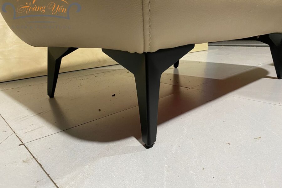 Chân ghế kim loại màu đen mang cảm giác mạnh mẽ, sang trọng, góc cạnh rõ nét, vát chéo tinh tế.
