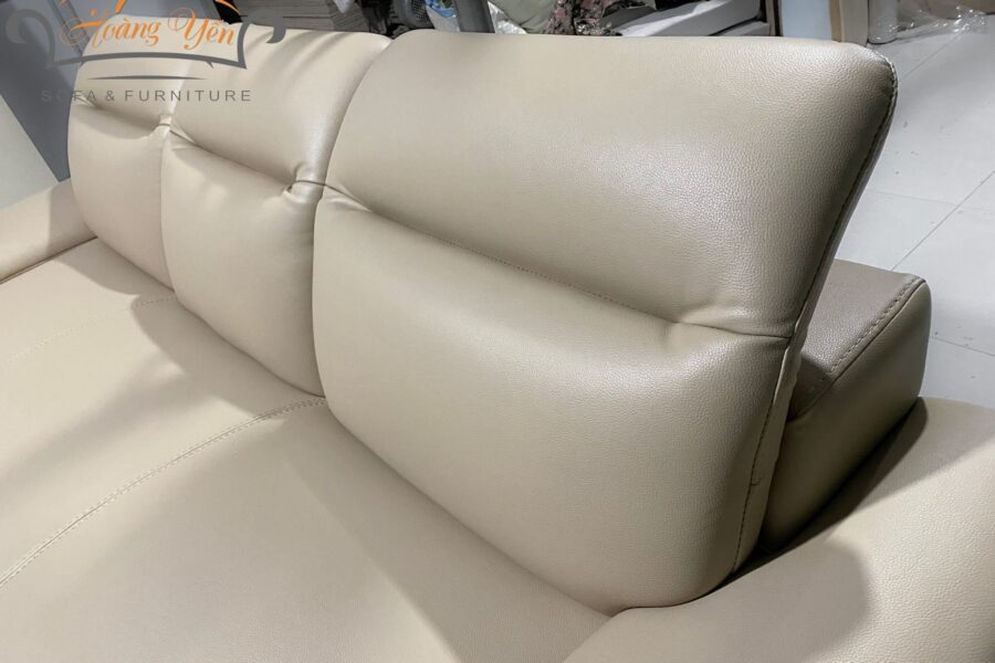 Tựa lưng có lớp đệm dày, chia khối tinh tế bằng một đường may ngang giữa lưng và gáy, tạo điểm nhấn và giữ phom đẹp.