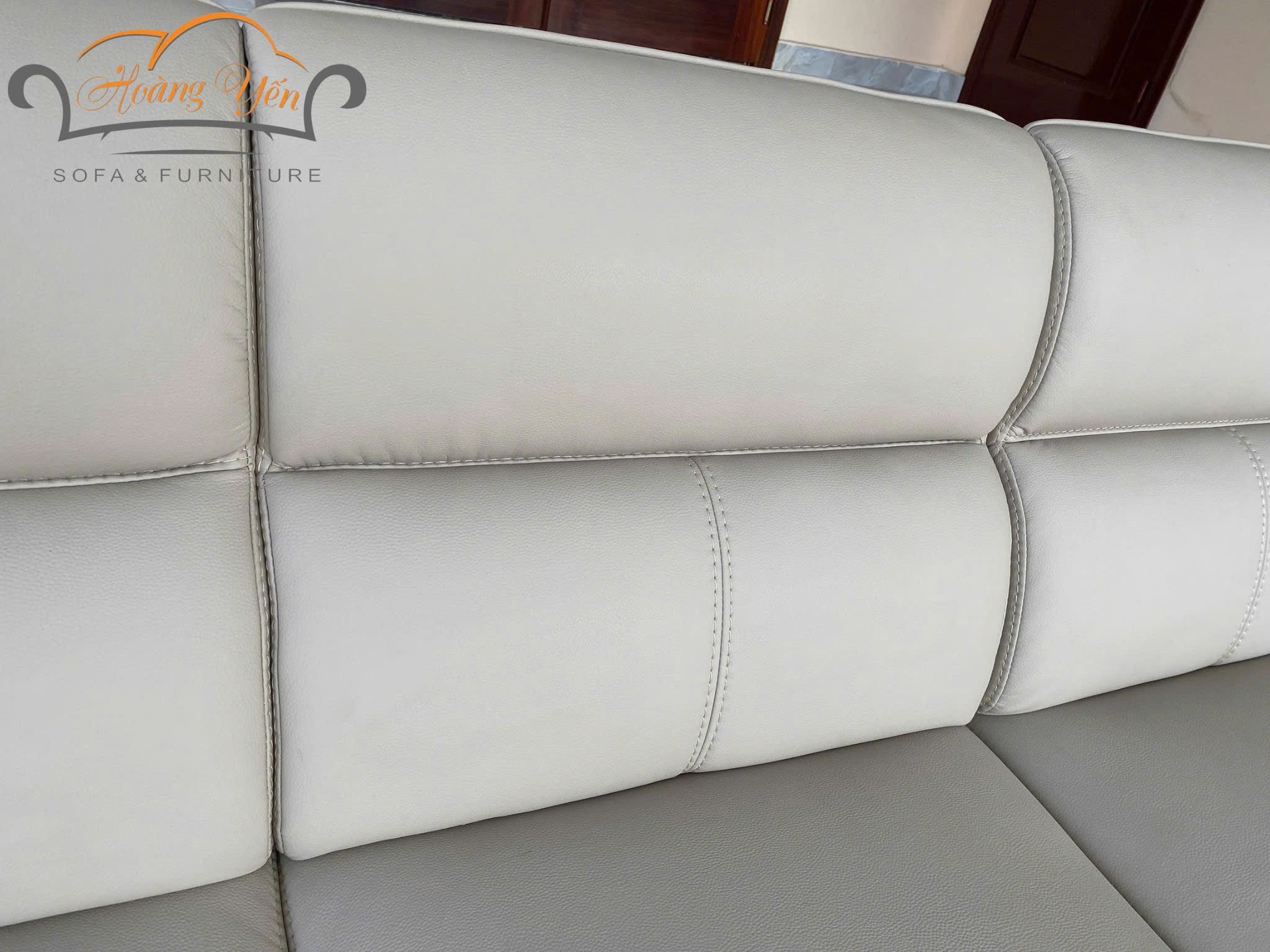 Mẫu sofa này được làm bằng da NANO cao cấp 2 lớp có bề mặt trơn bóng, mềm mại, chịu được mài mòn và dễ vệ sinh.