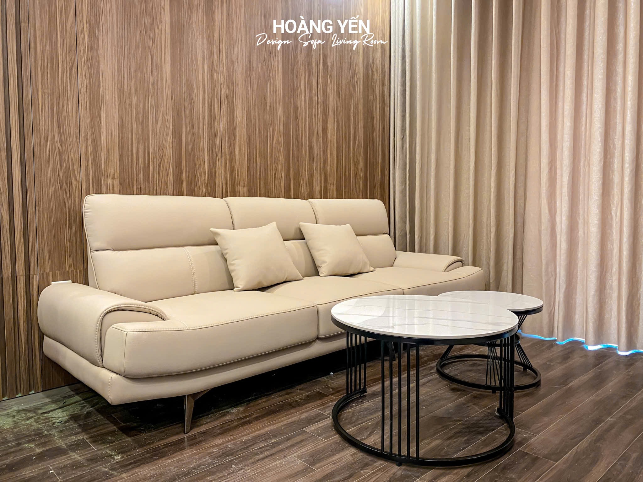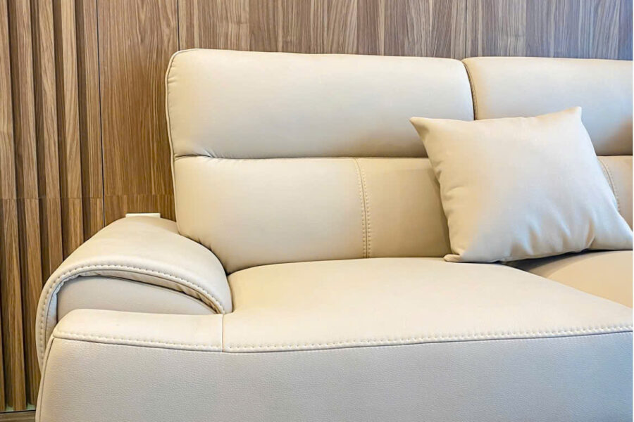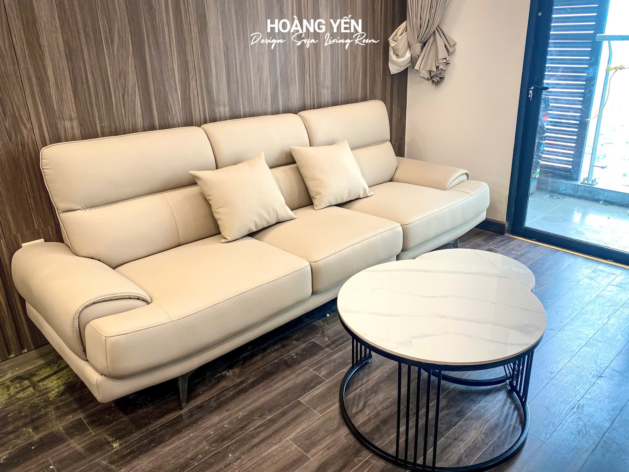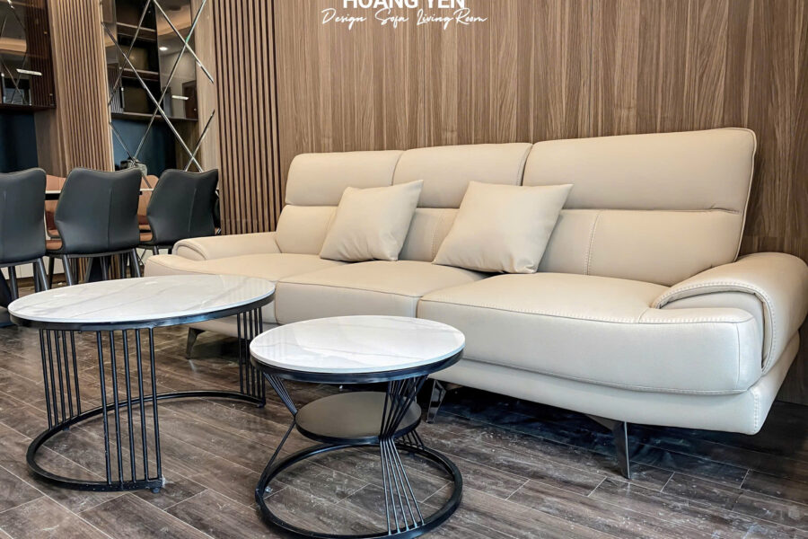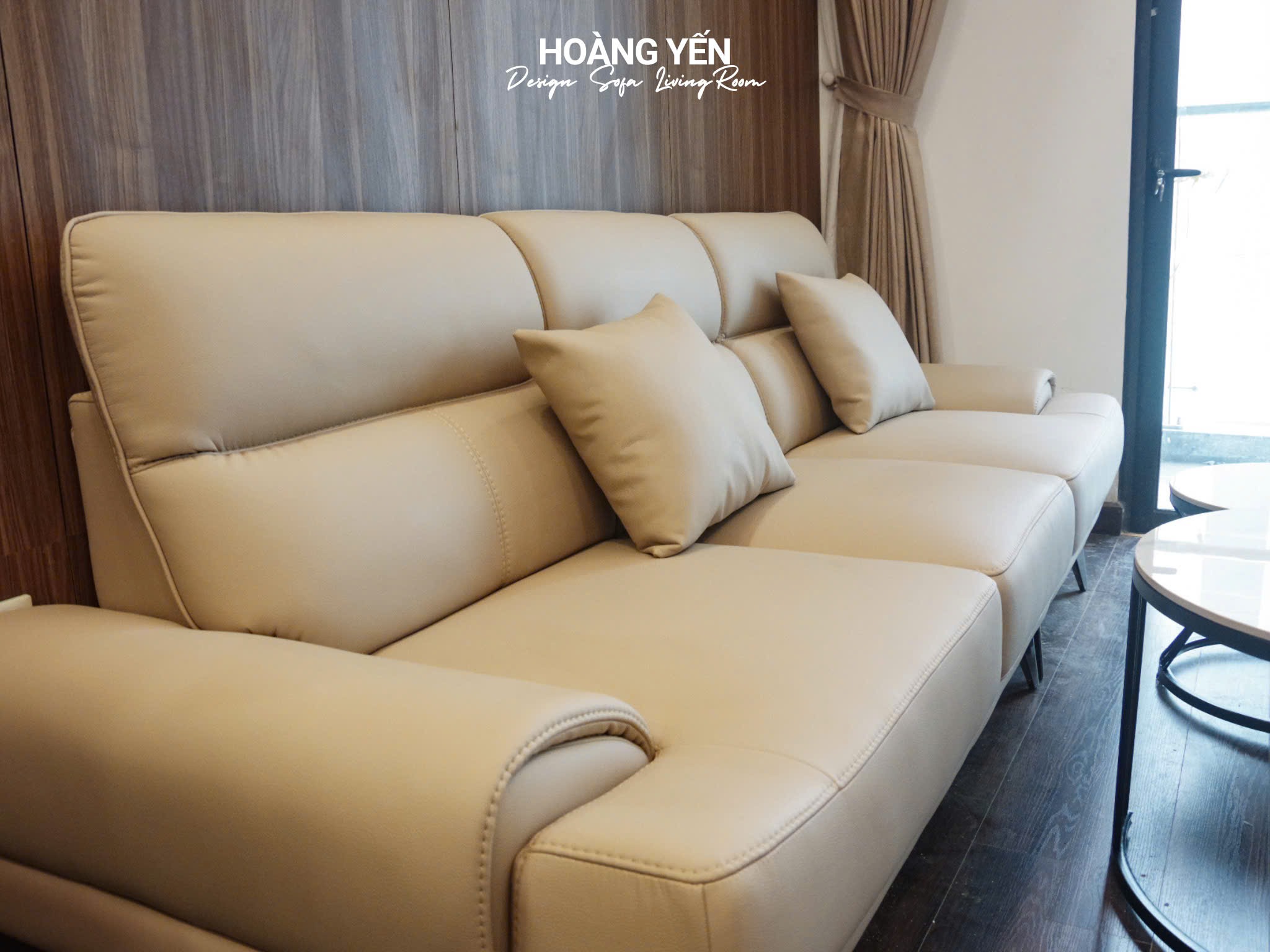 Sofa văng da SHY415 tông màu kem sáng tạo cảm giác ấm áp, nhẹ nhàng và tinh tế.