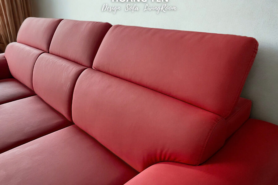 Bộ sofa có màu đỏ đậm, rực rỡ và nổi bật, có độ bão hòa cao và sang trọng hơn dưới ánh sáng.