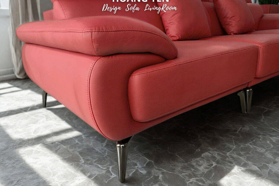 HY434 màu đỏ với văng dài 2.5m, đôn to 60*80, được làm bằng dòng da MTT-121 cao cấp 2 lớp có giá là 13.800.000.