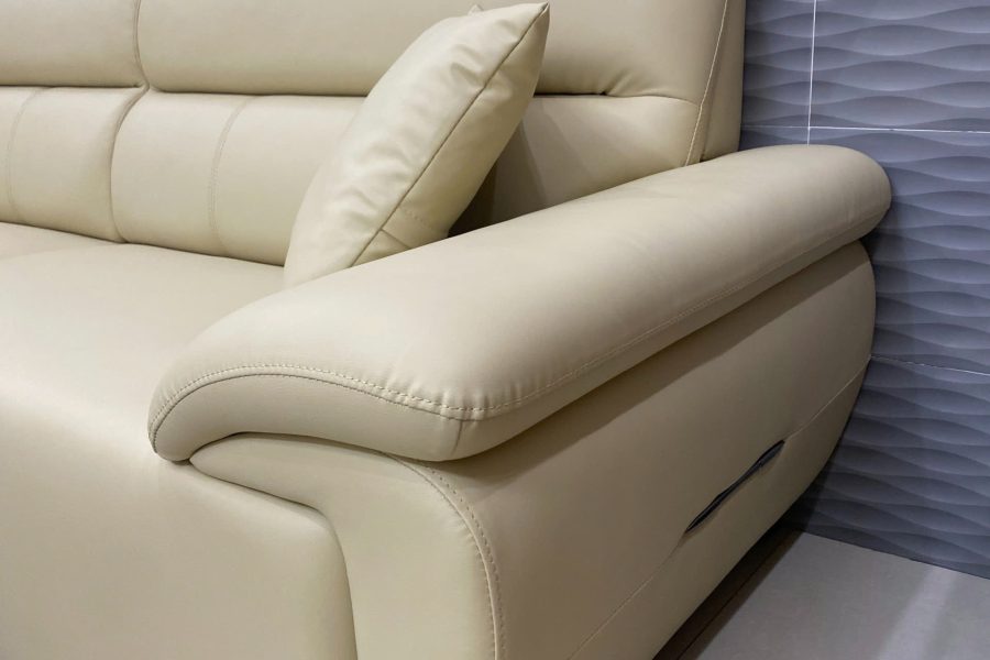 Điểm nhấn kim loại bạc ở hông làm sofa thêm phần hiện đại, gợi cảm giác công nghệ.