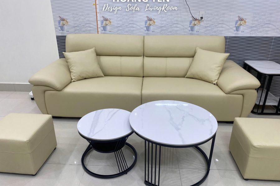 Sofa da kem hiện đại vừa có chút ấm áp, tạo sự cân bằng, tinh tế và dễ chịu cho mắt.