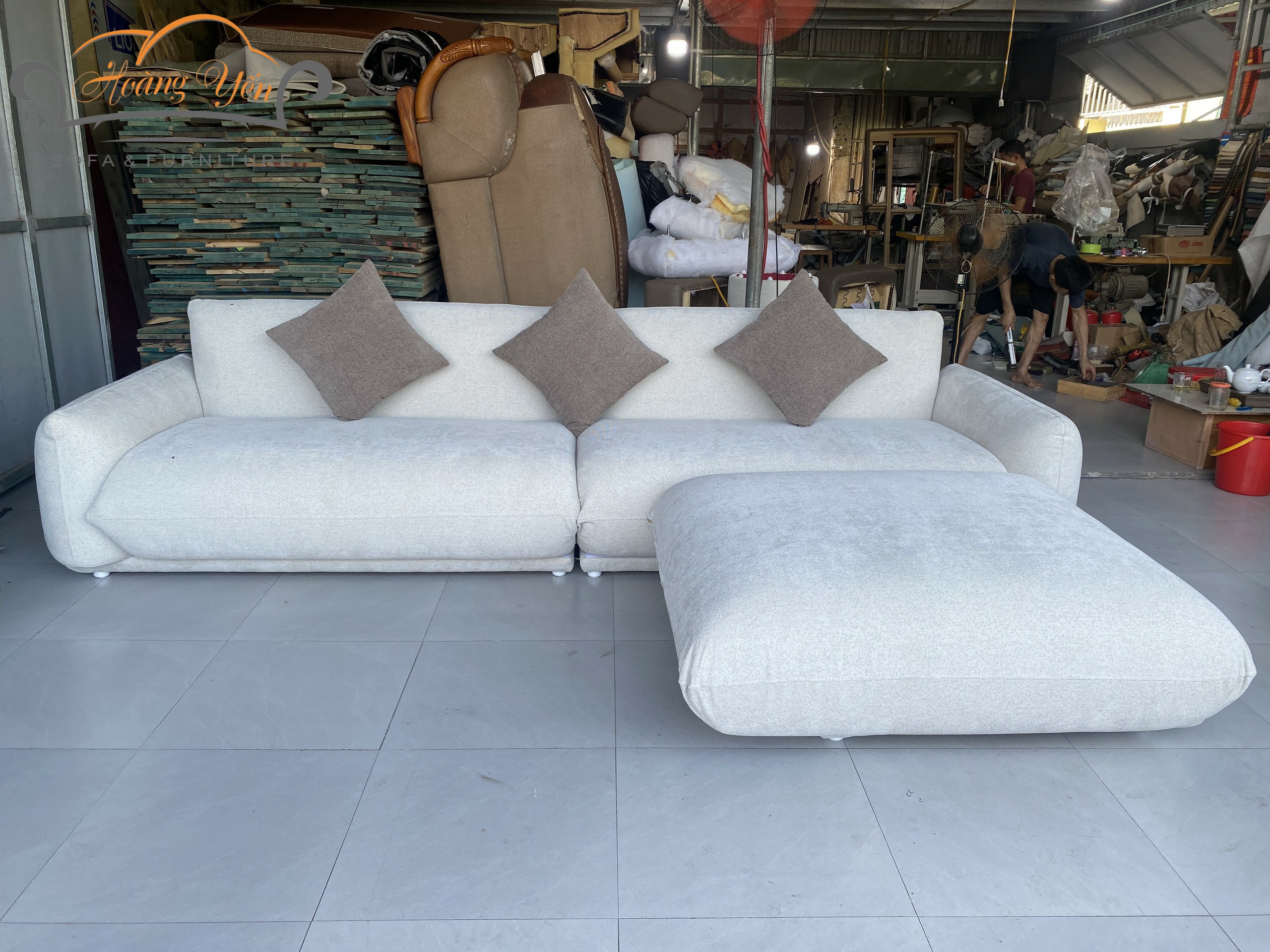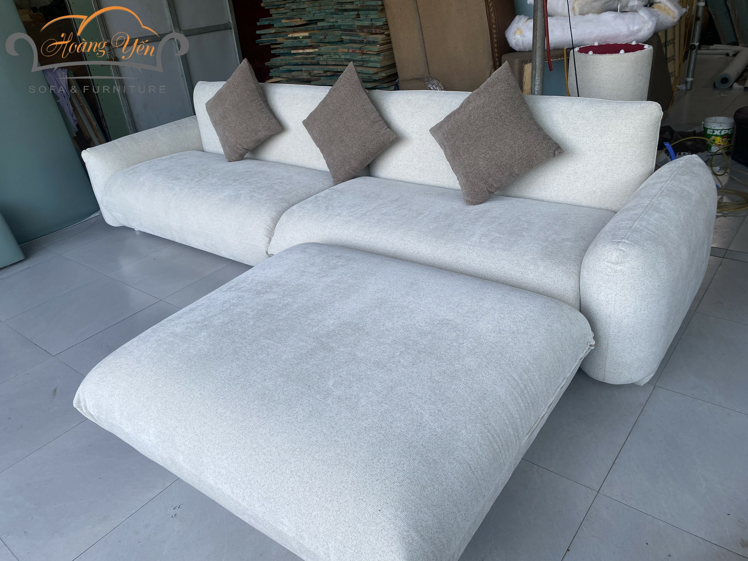 Sofa văng dài 3m đủ để 3-4 người ngồi thoải mái và một đôn to 1.8m có thể làm chỗ ngồi cho 1-2 người hoặc nơi để chân.