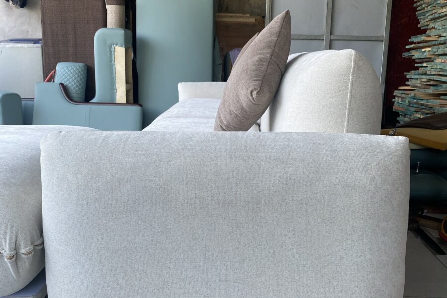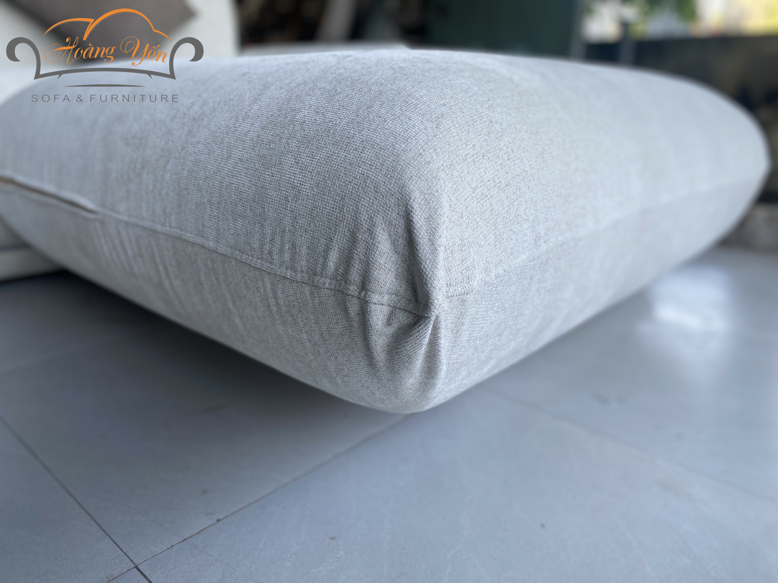 Mẫu sofa này được làm bằng Nỉ cao cấp có bề mặt mềm mại, tạo cảm giác thân thiện.