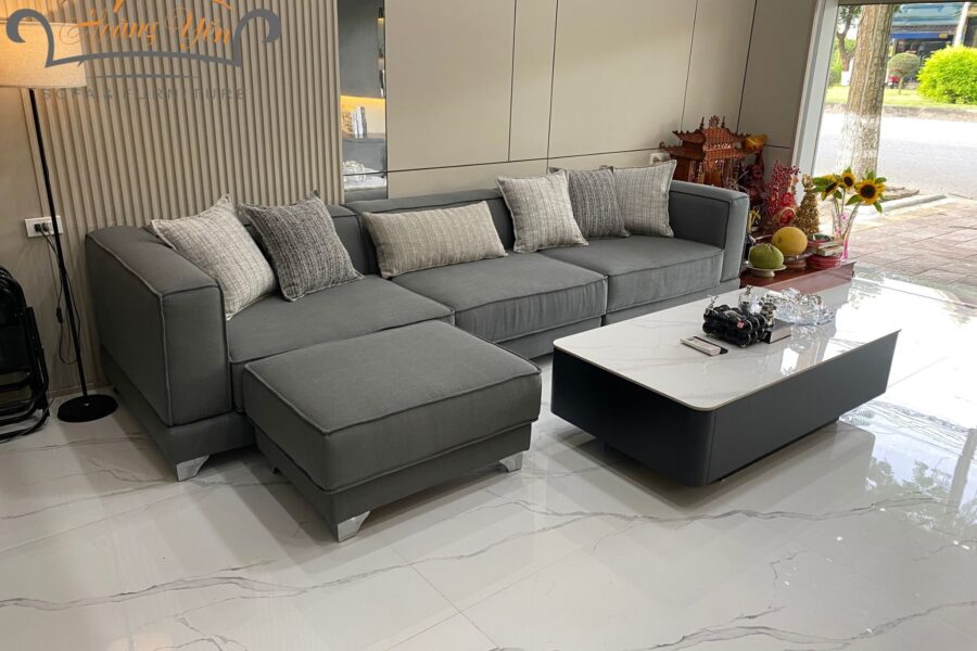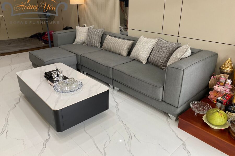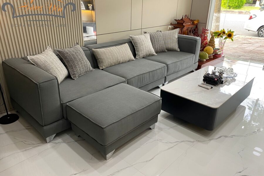 Diện tích lý tưởng để đặt bộ sofa nỉ góc rời này nên từ 20-30m².