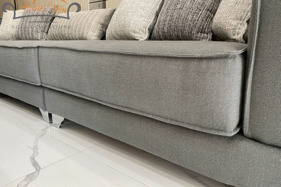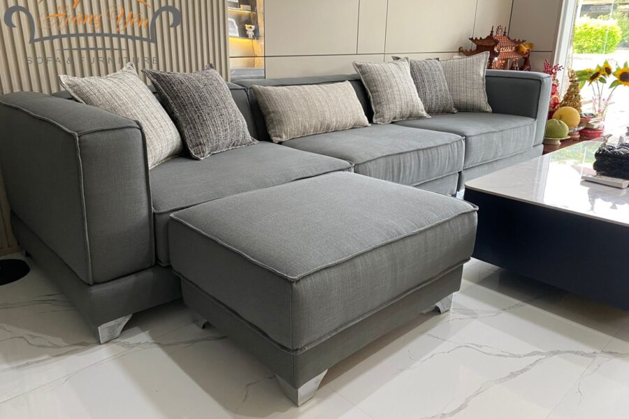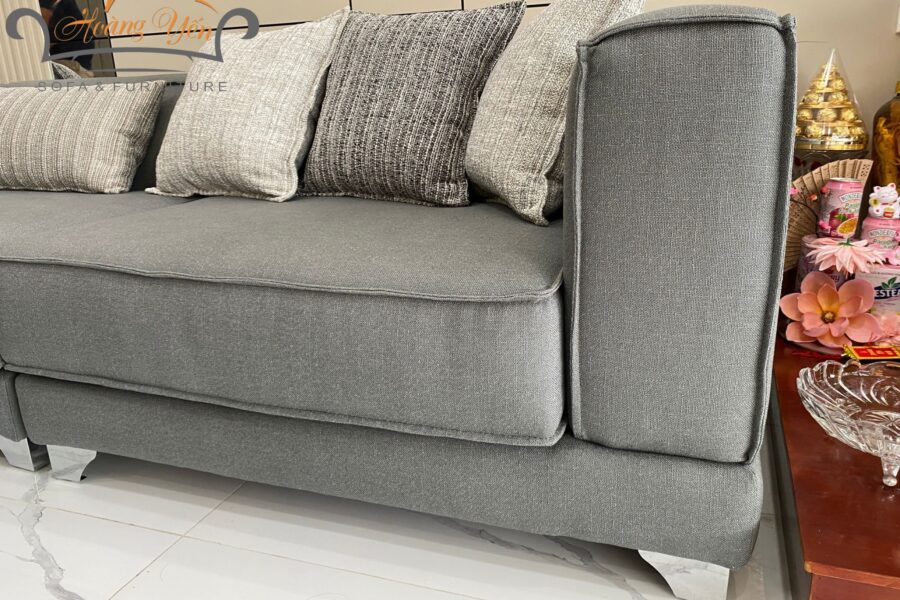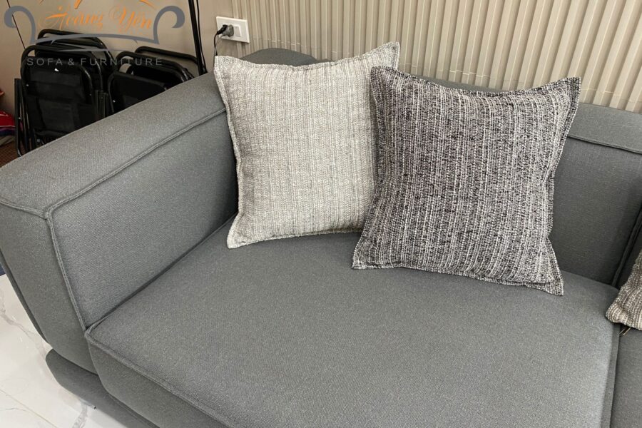 Sofa pha trộn tinh tế giữa các tông sợi xám đậm và xám trung bình.